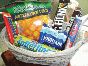 See that basket full of candy? My Dad brought it to me last month when he and my mom came to visit for Mother’s Day.
