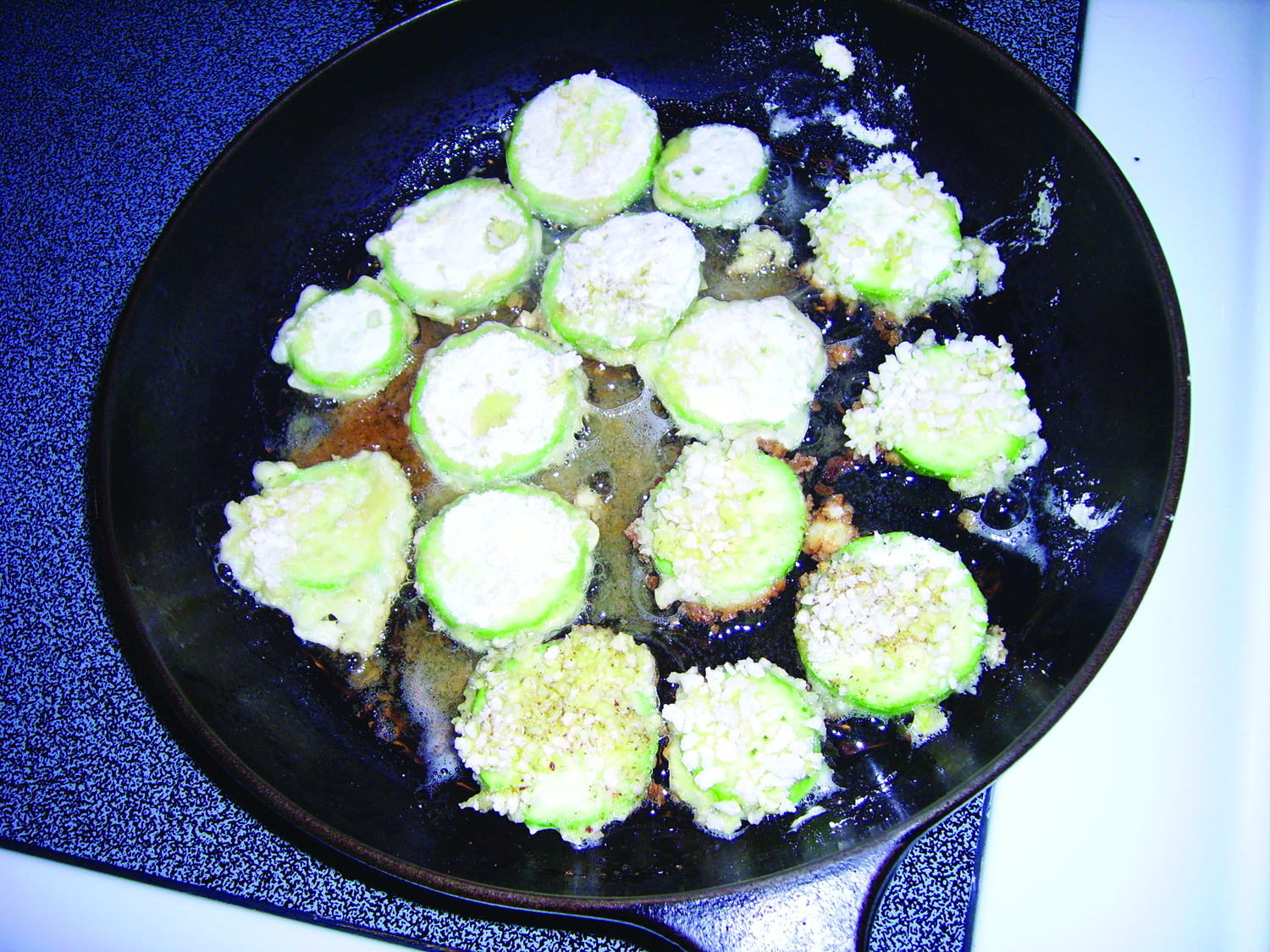 Captain Cavedweller and his mother would founder on fried zucchini if someone would let them. When I make fried zucchini, I have to quietly sneak into the kitchen and make it as fast as I can, otherwise CC is camped out beside me eating them as fast as they cool down enough to put in his mouth. When his mom is visiting, I can just give up any thought that I will get even one bite, cause they aren’t sharing. Not at all.