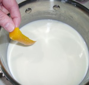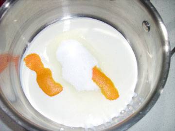 Mix togehter cream, sugar and orange rind, cook over medium heat until sugar is completely dissolved.