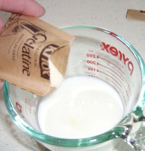 Sprinkle gelatin over ¼ cup milk in a small bowl. Stir until moistened. Let stand five minutes (it will be lumpy).