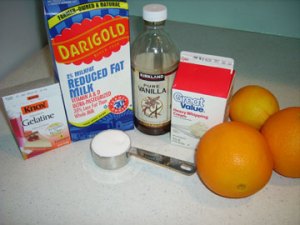 Cook heavy cream, granulated sugar and orange rind strips in a saucepan over medium-low heat, stirring occasionally for about four minutes or until sugar is dissolved. Remove from heat and add gelatin mixture, stirring until completely dissolved. Add in vanilla and remaining ¾ cup milk. Stir in then discard orange strips.