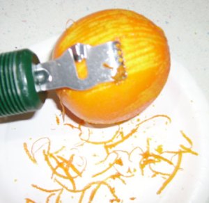 Start off by zesting an orange. This part was really fun because as soon as the zester dug into the orange flesh, the sweet lovely smell of citrus nearly made me melt.