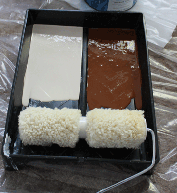 The way The Woolie works is the roller is big and thick and, get this… wait for it… Woolie, and is split in two. You pour the two colors of paint of your choice in the split tray and get to work. When you are selecting paint colors, decide what overall color you want to go for and then choose paint both two shades lighter and two shades darker. I know it sounds crazy, but it works!