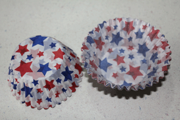 This one is easy – you can get patriotic cupcake papers just about everywhere right now. They are in grocery stores, departments stores, kitchen stores. I think I got these at Wal-mart last year.