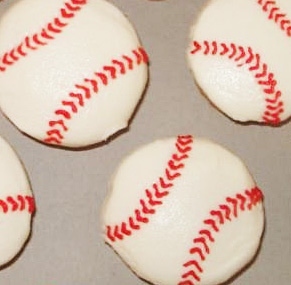Keep the menu simple and authentic… serve hot dogs! Offer peanuts in the shell. You can warm them by popping in the oven for a few minutes, then serve in miniature brown paper bags. For dessert you could have baseball cupcakes. These are cute and easy to make. Just frost with white frosting then draw on the red “stitching.” You could also serve Apple Pie or have a bonfire and make S’mores.
