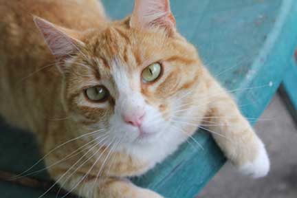 Speaking of the Heinous Cat, as soon as the dog appeared, he came rip-roaring up to me and stood with his fur on end, tail swishing and eyes narrowed. Deciding he could take a dog 10 times his size, he growled and took off after Stinky. The dog, however, thought the cat was playing and ran around yipping happily then turned and tried to chase the cat.