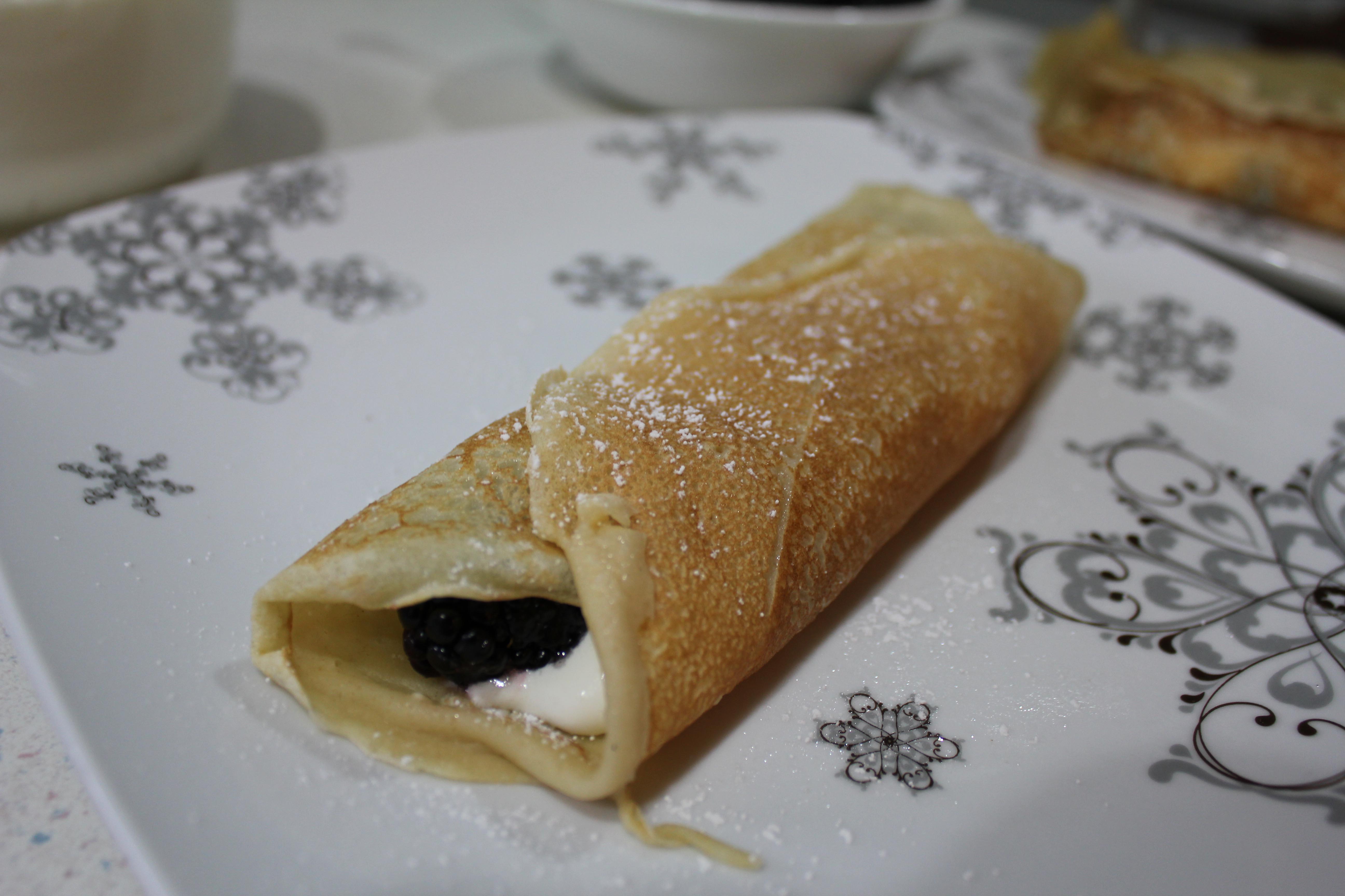 On special occasions or the rare days when Captain Cavedweller and I can enjoy a leisurely breakfast, I like to make crepes. Our favorite filling is fresh fruit with whipped cream. Captain Cavedweller loves bananas while I tend to favor berries.