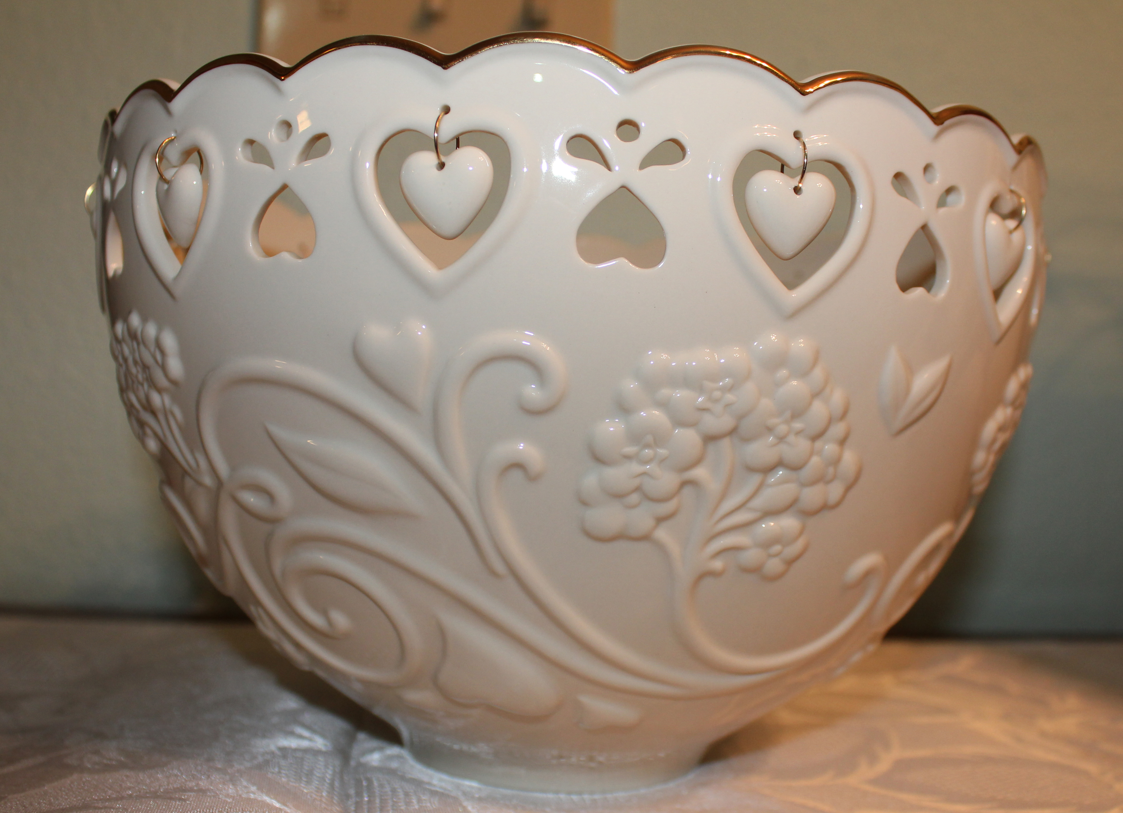 I love, love, love this bowl Captain Cavedweller gave me for Valentine’s Day last year. See the little dangly hearts? CC makes me feel all dangly when he gives me presents like this.