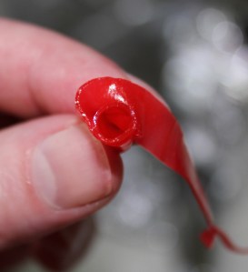 If you get grease on your fingers from the cake, make sure to wash your hands because the Fruit Roll-Ups do not stick to anything once they get greasy.