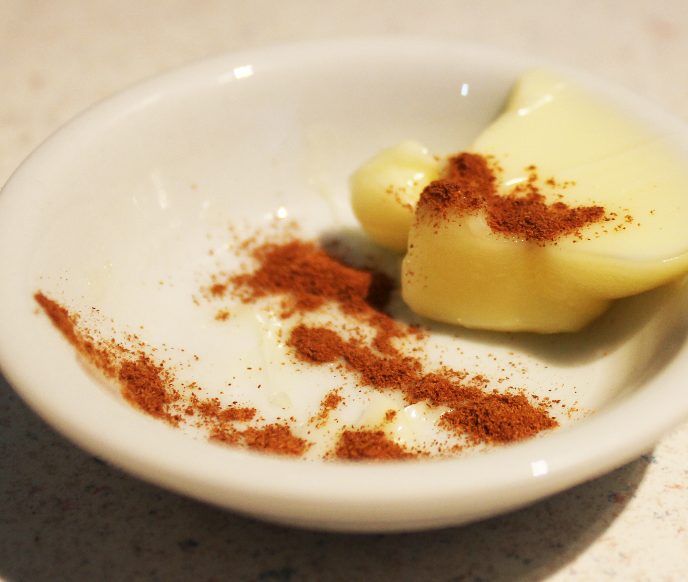 Mix butter with remaining cinnamon and plop onto toast. Smother in maple syrup and devour!