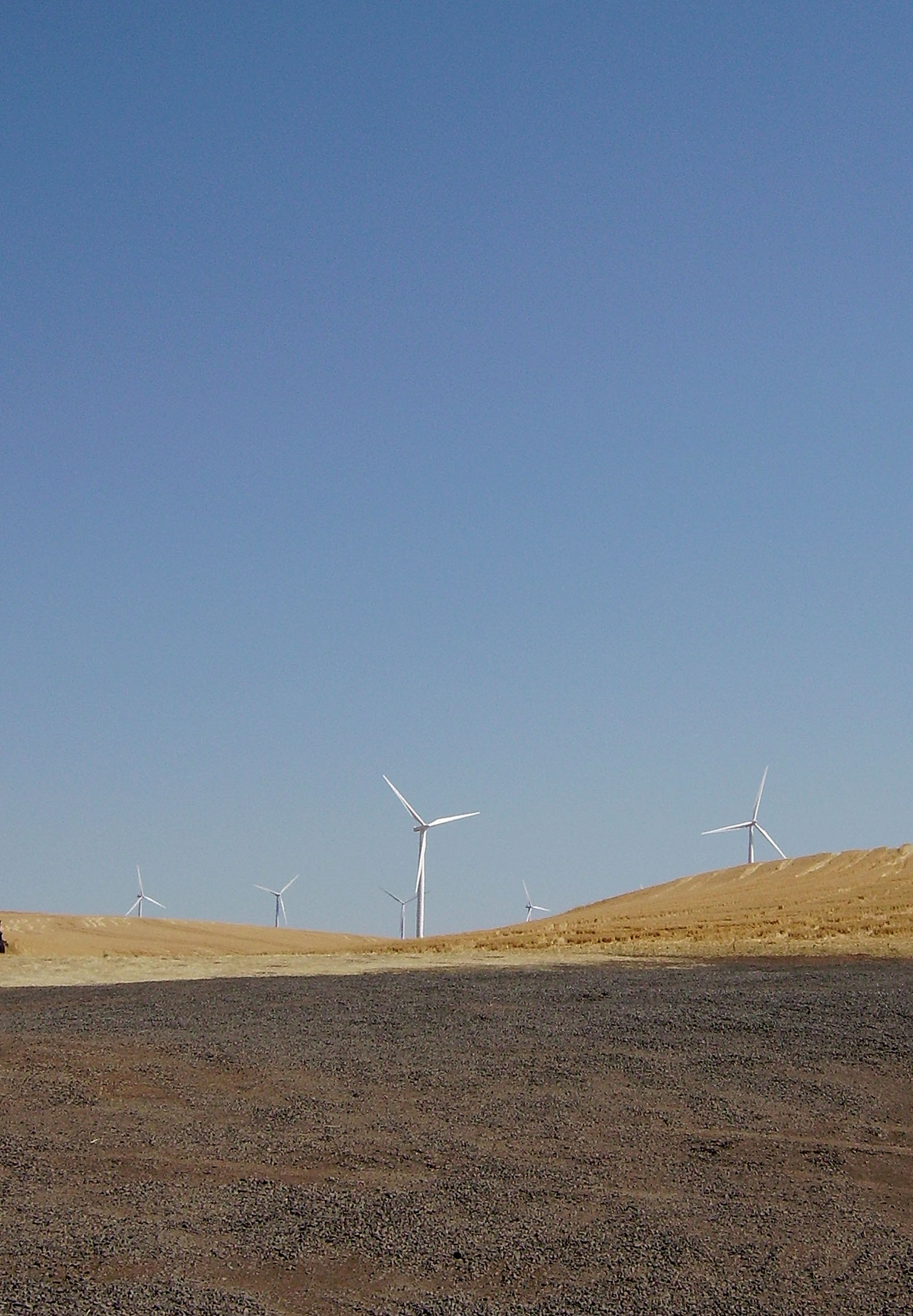 I don’t know what it is about them, but I love seeing this big white blades reaching up into blue sky. Especially when they are surrounded by fields of golden wheat, like these were in the summer.