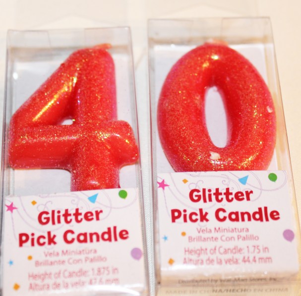 Without missing a beat, she picked up the “40” candles, looked at them, looked at me and asked, “So, are these for your daughter?”