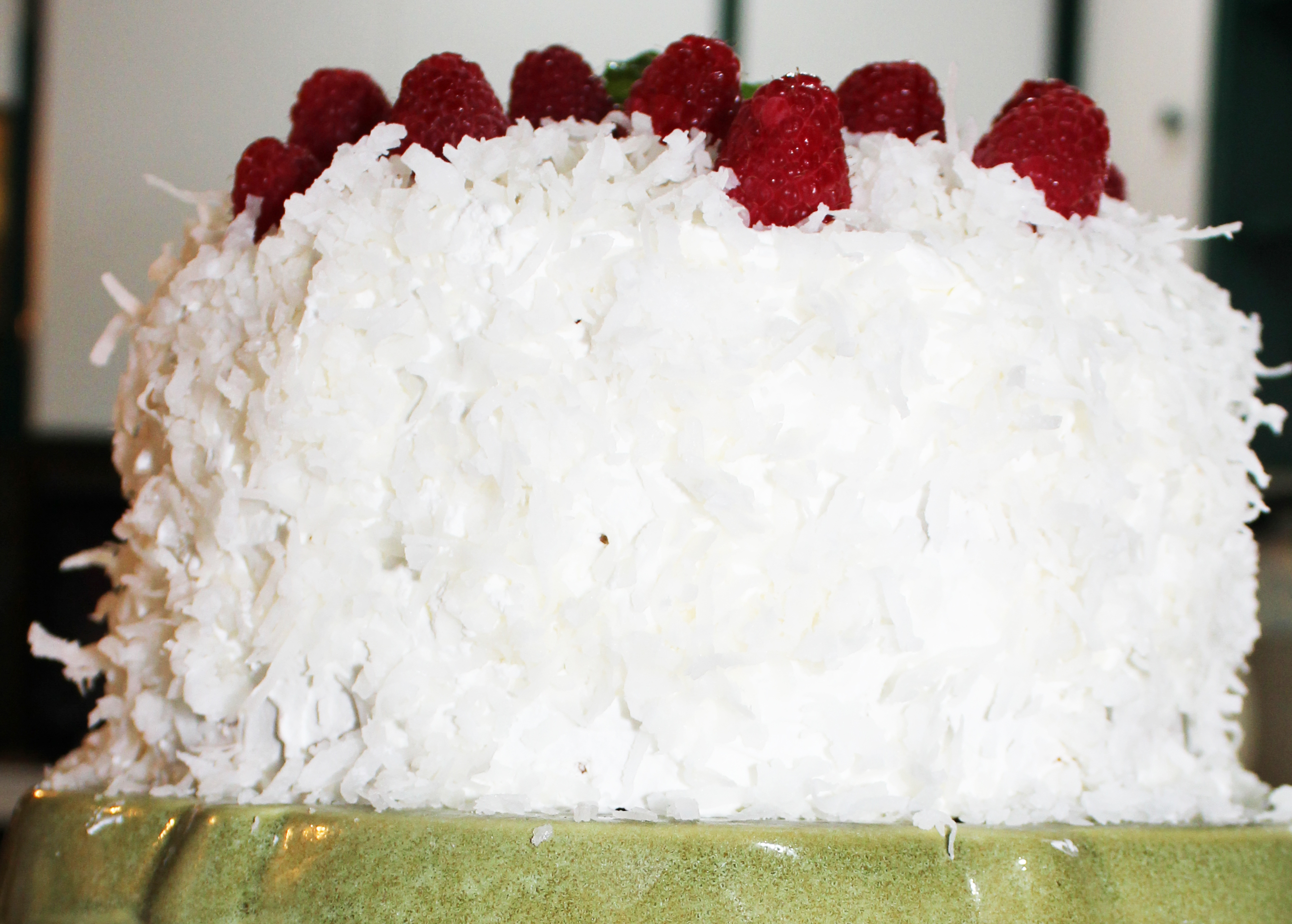 The deliciously delightful thing about this cake is that I get my coconut fix along with raspberries. I could even work some chocolate in there, but I managed to restrain myself. Barely.