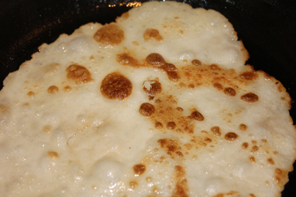 If you have a griddle, fantastic, if not, I used a cast iron skillet with some butter or a dab of oil to fry the Lefse.