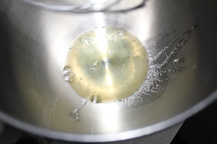 Slowly add in sugar, a tablespoon at a time until well blended and glossy, stiff peaks form. Then add in remaining ingredients.