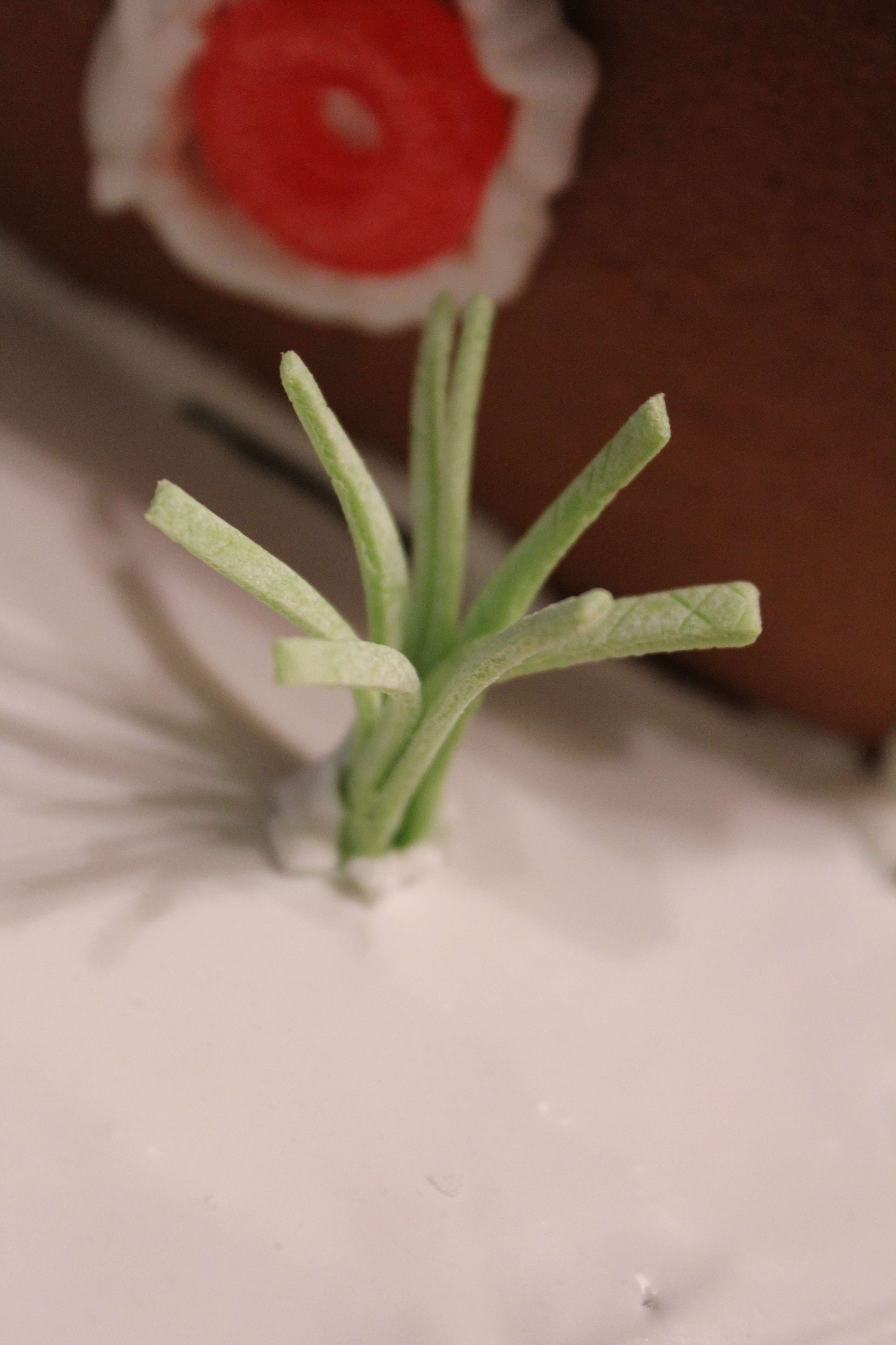 The finished fence looked pretty good, if I say so myself. I used the frosting to glue the cross pieces to the pickets.