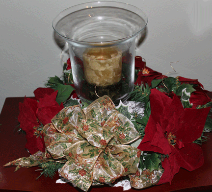 You could also use a large, flat shaped bowl and place in several votives then fill with jellybeans. This could also work with a hurricane vase and a larger candle.
