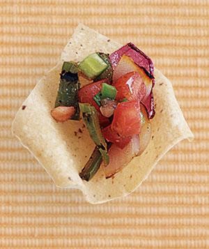 Grill, turning occasionally, until tender and charred, 6 to 8 minutes. Transfer to a cutting board. Cut the pepper and onion into 1/4-inch pieces and transfer to a bowl. Add the salsa and stir to combine.