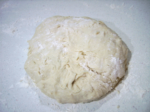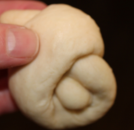 You are basically going to tie a knot with the dough. Just fold one end under and one end over.