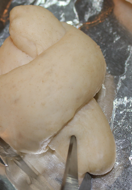 Punch the dough down again and start pinching off pieces about the size of a golf ball.