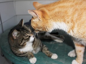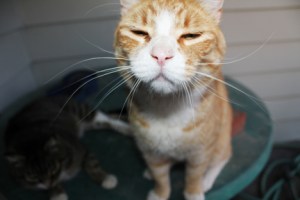 This is Apricot. She’s big, she’s bossy and she rides herd over the kittens like nobody’s business. In addition to her freaky color eyes and fluffy salmon fur, she is the nanny and doesn’t want anyone messing with the kittens unless she gives her approval. It’s a good thing they have her, too, since their mother is a standoffish, mean little cat who slaps them anytime they get close to her.
