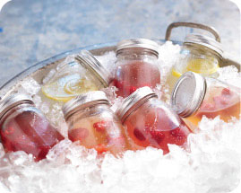 Pour juice into a pitcher or bowl, straining out peaches. I ran mine through a colander and made sure I got every last bit of juice out of the peaches. Cover and store in fridge until ready to make the drinks.