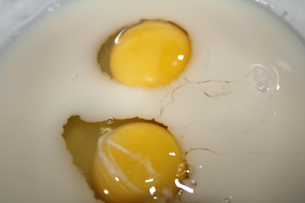 Add in eggs and whip lightly then add flour and stir until well mixed.