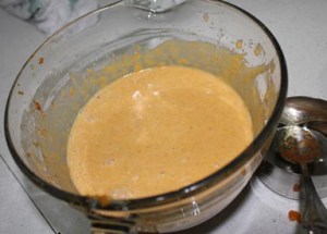 Pour half the mixture over the top of the cookie crumbs. Work with some sense of urgency at this point because it won’t take long for the pudding to begin to set.
