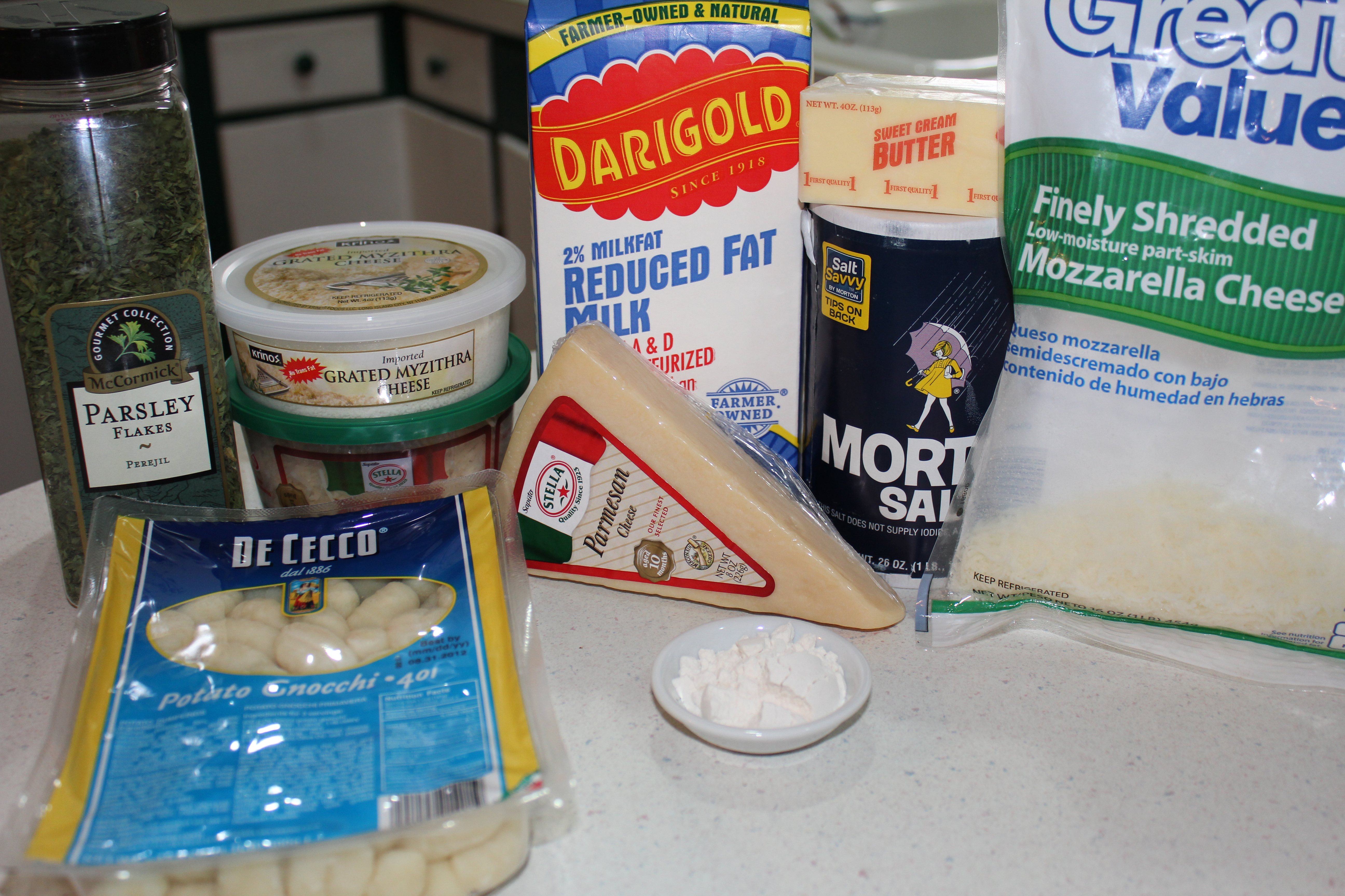 Ingredients for Gnocchi. You can use whatever assortment of cheese you like - this is what I had on hand.