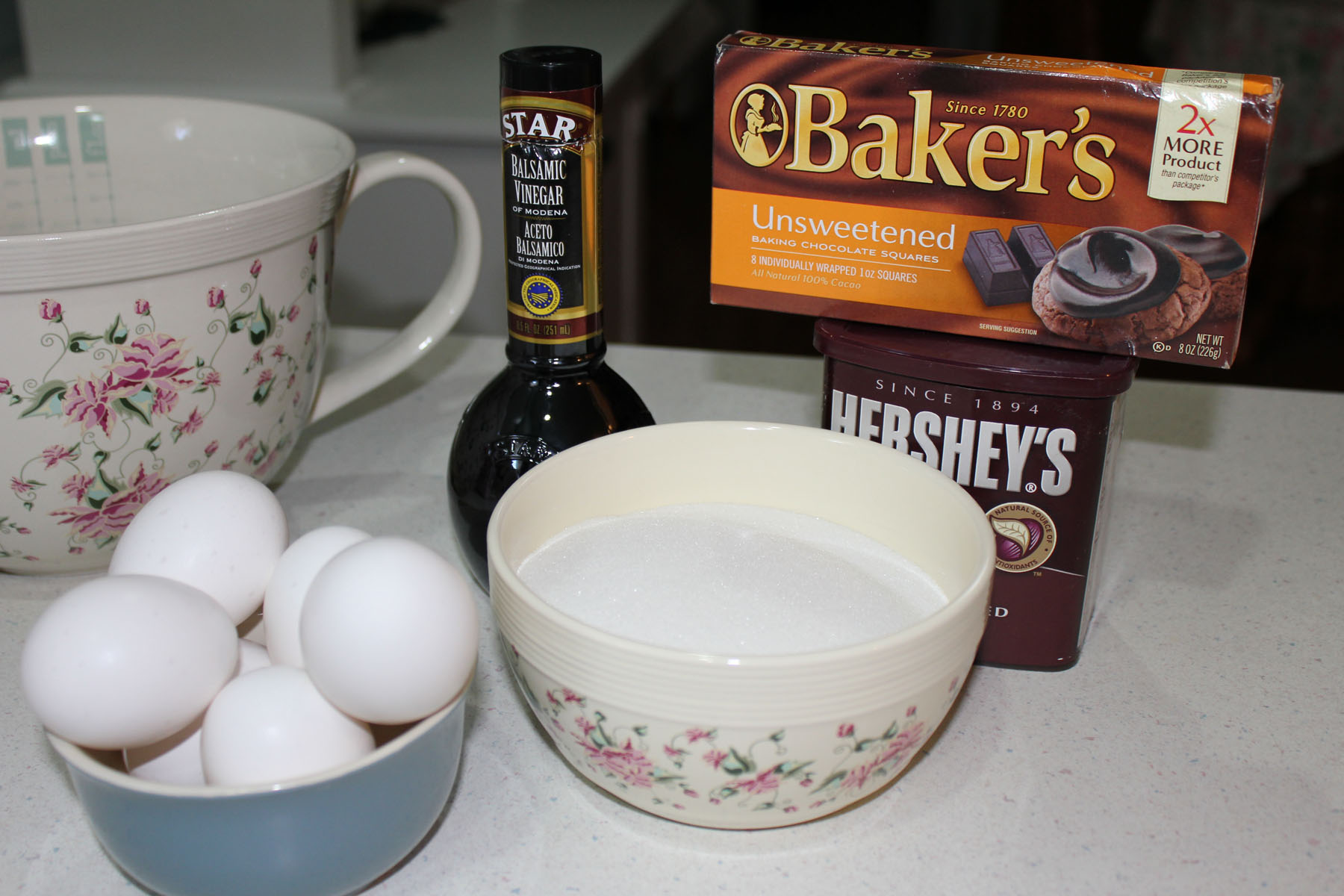 Add cocoa powder and vinegar, followed by the chopped chocolate.