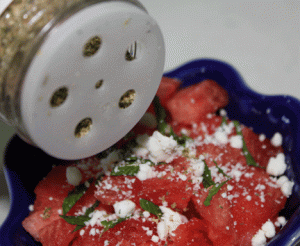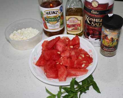 Place the meat on top and then finish with a sprinkle of cheese. I added Feta cheese crumbles to my salad and it was tasty. Hubby added croutons, sunflower seeds and almost everything except the kitchen sink to his salad. My point would be, add whatever tastes good to you. I used a light vinaigrette dressing and Hubby coated his in salt.