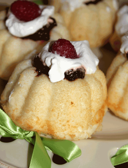 Slide a knife around the side and center of the tube pan. Remove cake to a serving plate. Garnish with berries and whipping cream, if desired. Yield: approx. 8-10 servings.