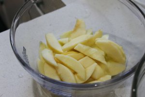 While the apples are cooking, you can start filling your mini-muffin cups with the chilled dough. Shape dough into balls about the size of walnuts.