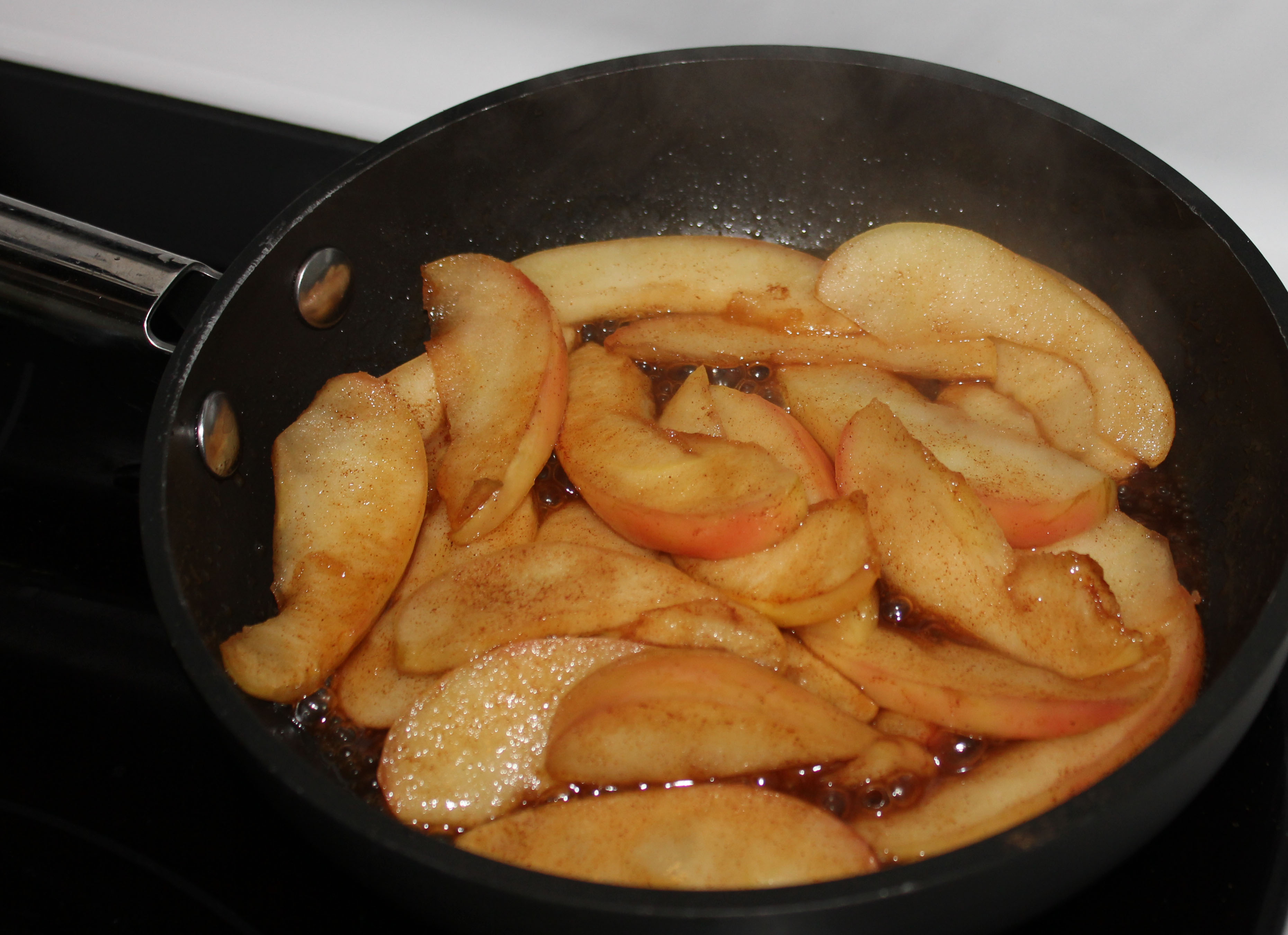 Filling: Peel, core and slice apples into small pieces. In a heavy saucepan, stir apples with cinnamon, sugar and flour and well coated. Cook over medium heat until apples soften and the filling looks a little like caramel. As it thickens, you’ll need to stir it more frequently. The reason for precooking the apples is because the crust cooks really fast and if you put the apples into the cups uncooked, they’ll still be crunchy when the crust is long past done.