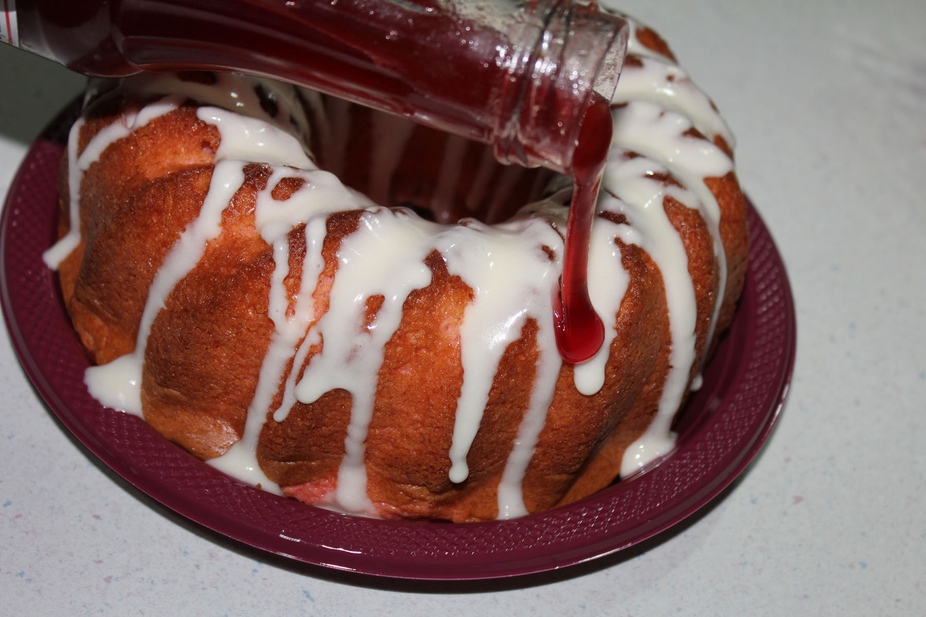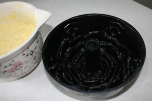 Preheat oven to 350 and thoroughly spray a bundt pan with non-stick cooking spray.