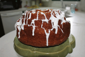 I love bundt cakes because they are so easy to make and always so moist. I decided to experiment a little and boy was that a tasty idea. Even Captain Cavedweller gave this a two thumbs up.