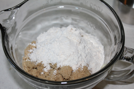 Make the crumb topping next by mixing softened butter, cinnamon, brown sugar, flour and oatmeal until crumbly. Set aside.