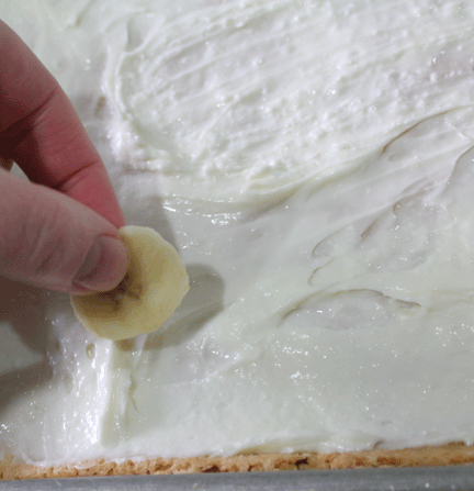 Spread over your sugar cookie crust. I would mention at this point that you should cut your pizza into slices or bars at this point.