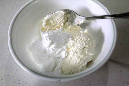 Mix whipped cream cheese with powdered sugar for the filling.