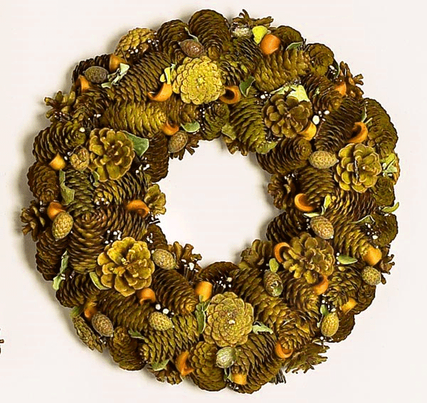 A pinecone wreath is a fun, woodsy way to say welcome. Just gather an assortment of pinecones and glue to a styrofoam form or wire to a wire form. You can get creative and add in different accents like nuts, twigs, cinnamon sticks, etc. If you wanted to stretch your effort to last a bit longer, you could use this wreath for Thanksgiving and right on through the holiday season.