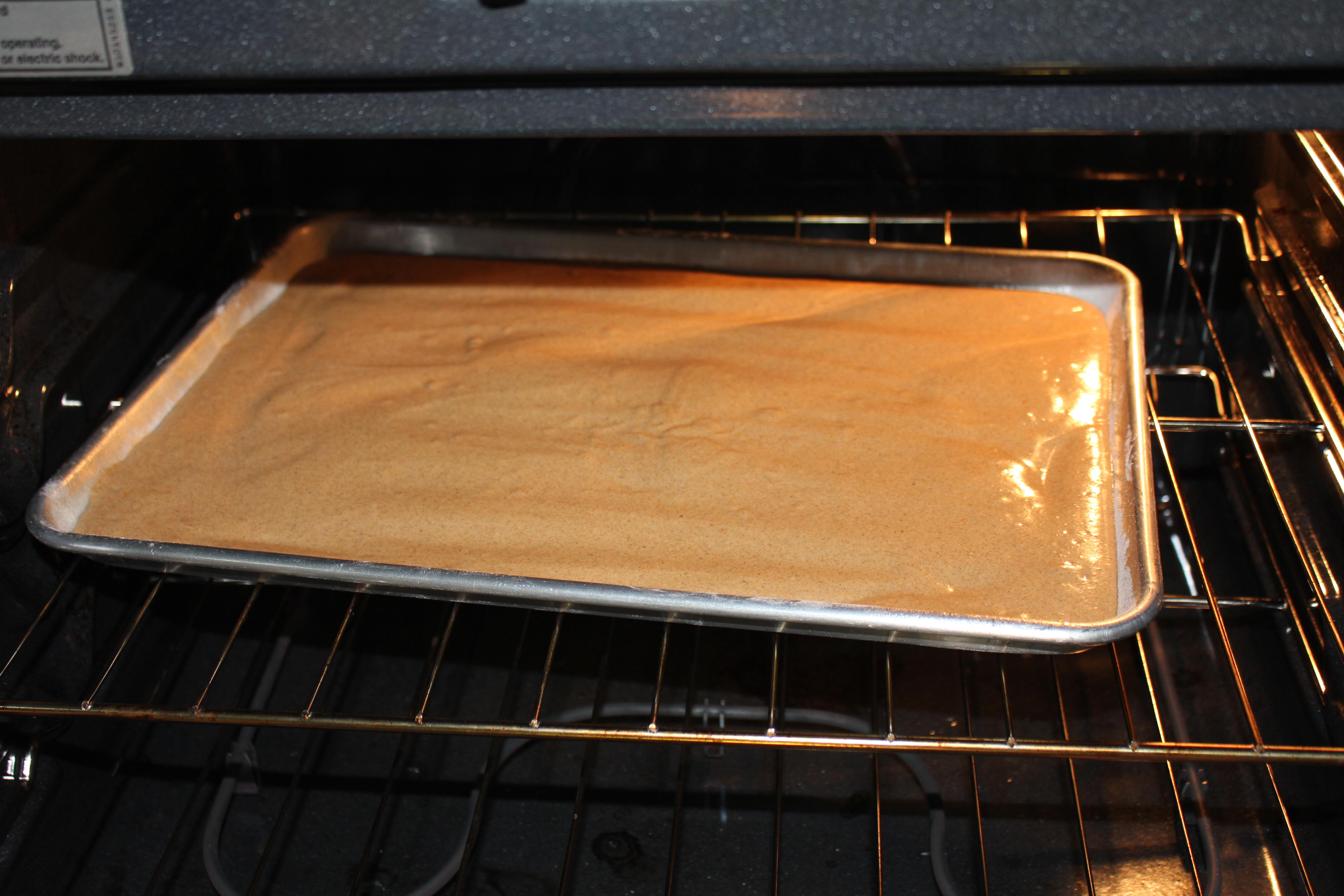 Pour into a greased cake pan or baking dish and bake at 350 until lightly browned and edges pull away from the pan.