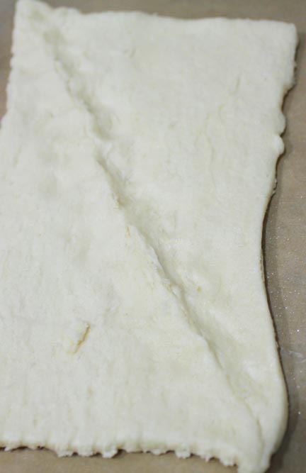 Next, spread on about half the can of raspberry pie filling. If you are making a three layer cake, you will use all the filling. If you are making a two layer cake, you will have leftovers. I scooped my leftovers into a Ziploc and tossed in the freezer to use for something tasty in the future.