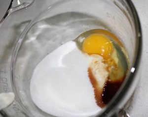 Mix up your whipping cream. Beat it on high until it starts to get thick then add in powdered sugar and vanilla. Finish beating until peaks form and it is a good thick consistency. Stick this in the fridge until you are ready to frost the cake.