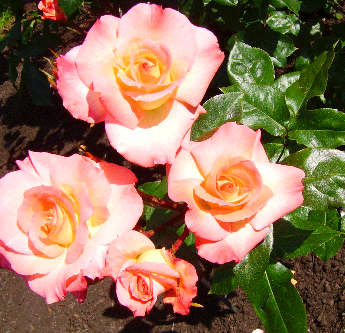 This rose reminded me of a summer sunset. That could possibly be the name for all I know. Someone remind me to take photos of the name plates before I take a photo of the roses next time. Please?